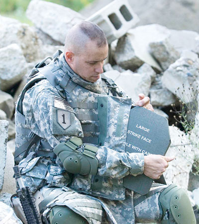 Dù không nặng nề bằng áo giáp thời Trung cổ, áo giáp thời nay cũng không phải là trang bị lý tưởng cho binh sĩ ngoài chiến trường. Khi chiến đấu, các binh sĩ Mỹ buộc phải mặc lên người bộ áo giáp cứng khá nặng nề và cồng kềnh. Để có thể chống đạn, áo được trang bị ít nhất 2 tấm gốm lớn dày cộm, được thiết kế nhằm bảo vệ phần trên cơ thể khỏi mảnh đạn và đạn bắn ra từ nòng súng. Nhưng muốn tăng cường khả năng che chắn, áo giáp cứng được may thêm nhiều túi để nhét thêm nhiều tấm gốm nữa, và kết quả là áo giáp sẽ càng nặng và cồng kềnh hơn.