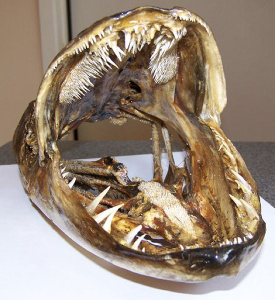 Đây là loài cá có cùng họ hàng với cá Barracuda, Muskellunge cũng có một thân hình thon dài và bộ hàm lớn với những chiếc răng nanh lớn cùng hàng trăm răng nhỏ sắc như dao cạo. Muskellunge là loài lớn nhất trong họ cá chó, chiều dài của chúng có thể lên đến 2m, cân nặng chỉ khoảng 50kg. Tuy nhiên với bộ hàm đầy răng nhọn, chúng có thể gây ra những vết thương cực kỳ nghiêm trọng cho con mồi. Thức ăn chủ yếu của chúng là các loài cá và động vật có vú nhỏ. Cũng đã có những ghi nhận về các vụ tấn công con người, tuy nhiên may mắn là chưa có ai thiệt mạng.