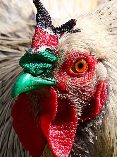 Con gà trống được sơn mào theo hình quốc kỳ Kenya trong cuộc diễu hành tại Nairobi. Ảnh: Reuters.