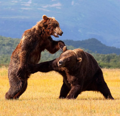 Hai con gấu nâu xông vào ẩu đả trong công viên quốc gia Katmai, Alaska, Mỹ. Ảnh: Solent.