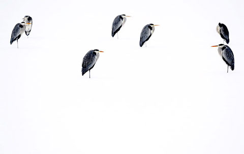 Sếu đứng co chân rụt cổ trên mặt đất tuyết phủ trắng xóa. Khỉ ôm nhau tránh rét trên cây. Dưới đây là những bức ảnh đẹp về thế giới động vật tuần qua.