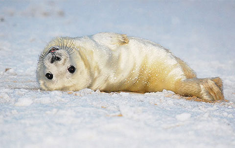 Hải cẩu con nằm lăn trên mặt đất ở Norfolk, Anh. Ảnh: Telegraph.