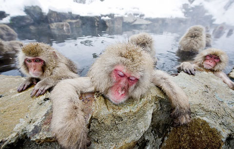 Khỉ thư giãn trong suối nước nóng ở tỉnh Nagano, Nhật Bản, khi nhiệt độ xuống dưới 0 độ C. Ảnh: EPA.