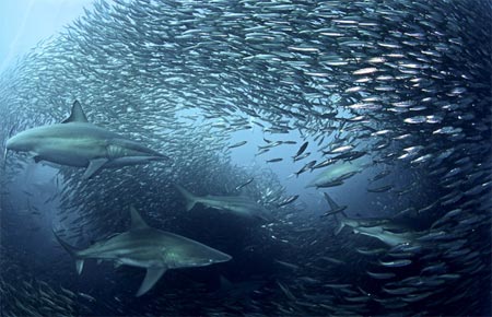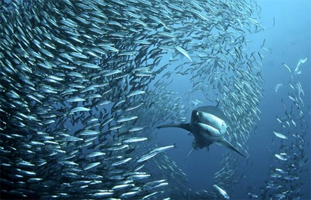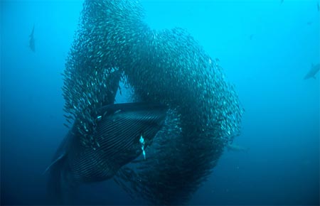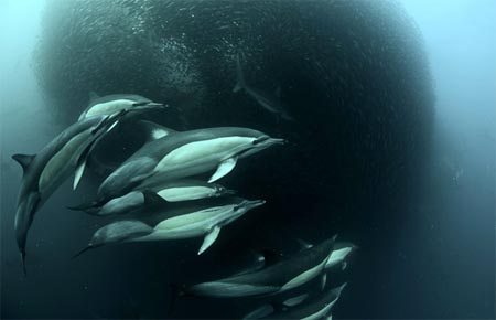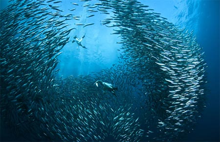 | Để tự bảo vệ mình, các con cá sardine kết thành những quả bóng khổng lồ có đường kính lên tới 20 m. |