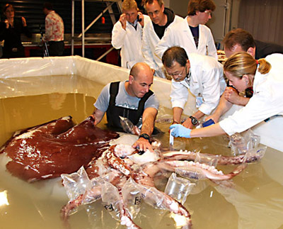 Các nhà khoa học New Zealand nghiên cứu mắt của con mực tại bảo tàng Te Papa Museum ở Wellington.