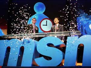 Steve Ballmer bên biểu tượng của MSN. Nguồn: AP |