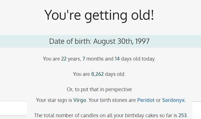 Khi truy cập vào trang web, bạn sẽ thấy nó gồm 2 phần, một phần cho chính bản thân bạn “this for me” và một phần cho bạn thân của bạn “this for a friend”. Chúng ta sẽ kích vào phần cho bản thân và điền ngày tháng năm sinh, sau đó nhấn vào “Go”. Thông tin về số tuổi, ngày tuổi của bạn sẽ được hiển thị kèm theo một số thông tin thú vị.