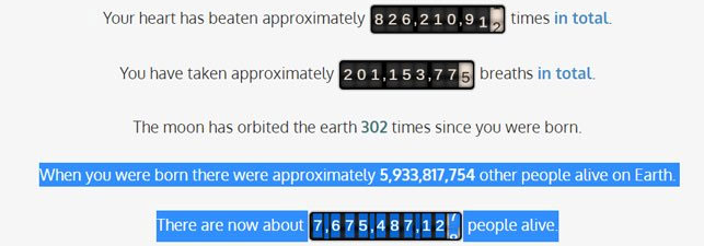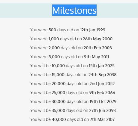 Các cột mốc quan trọng liên quan tới tổng số ngày bạn sinh ra.