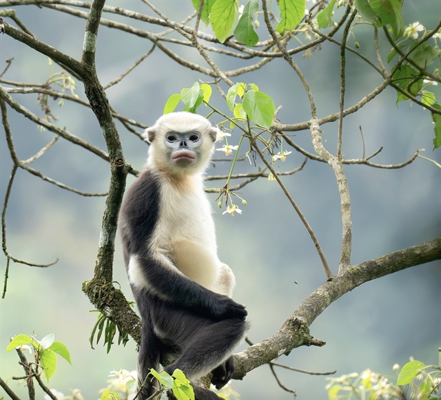 | Một con voọc mũi hếch Bắc Bộ. Ảnh danviet.vn |