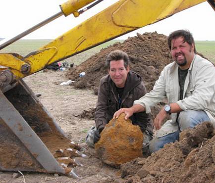 Vớ bở. Sử dụng các thiết bị đào bới hạng nặng để “khai quật” một điểm nóng khả nghi, đội săn đã “tóm” được một tảng thiên thạch lớn.